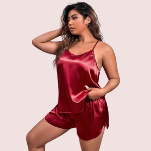 Experience luxury and comfort with our Plus Size Women's Silk Cami and Shorts Set, designed to enhance your nighttime wardrobe with style. Crafted from smooth and breathable silk fabric, this set offers a silky soft feel against the skin, perfect for lounging or sleepwear. The cami features adjustable straps for a personalized fit and a flattering silhouette that complements your curves. The matching shorts provide a relaxed fit with an elastic waistband for added comfort. Whether worn for relaxation or leisure, embrace effortless elegance and indulge in the luxurious feel of our Plus Size Women's Silk Cami and Shorts Set.