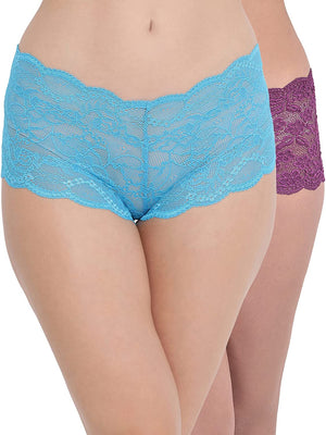 Ladies' Lace Low Waist Multicolor Boyshorts (Pk of 2)