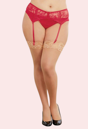 Sultry Red Lace Plus Size Suspender Garter Belt